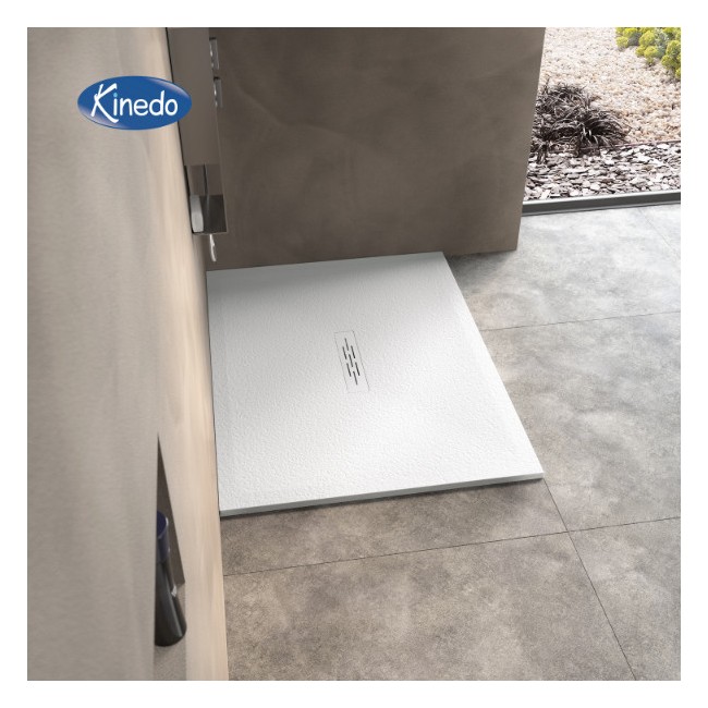 Receveur Kinemoon Style texture pierre lunaire blanc 90x90 bonde centrale