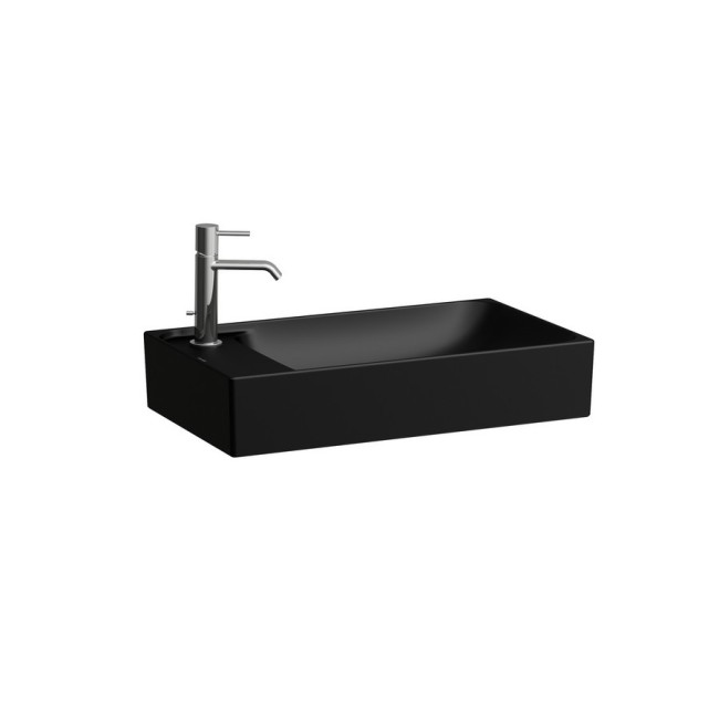 Meda vasque à poser avec plage de robinetterie à gauche noir mat 600x350x120 mm - LAUFEN H8121137161051