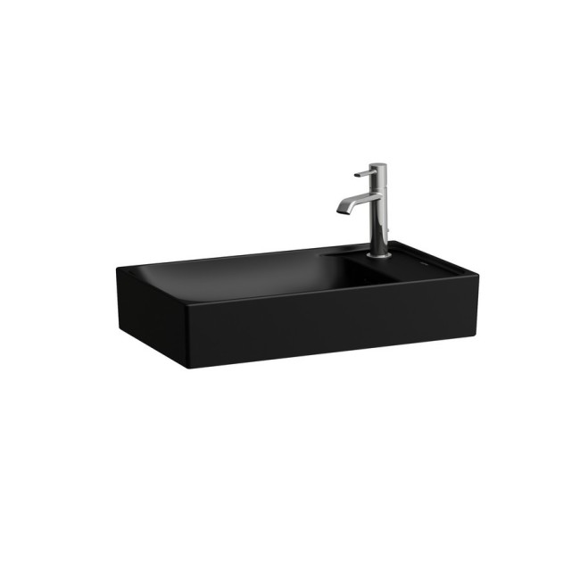Meda vasque à poser avec plage de robinetterie à gauche noir mat 600x350x120 mm - LAUFEN H8121137161121