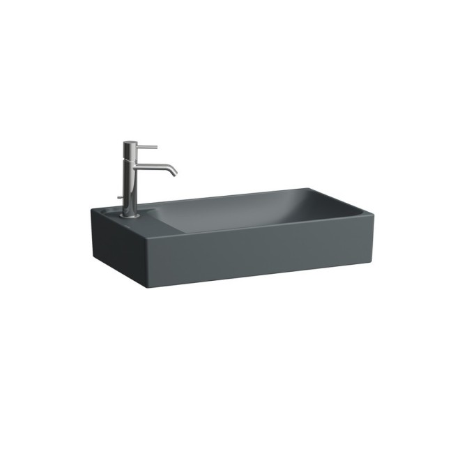 Meda vasque à poser avec plage de robinetterie à gauche graphite mat 600x350x120 - LAUFEN H8121137581051